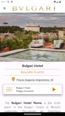 The voice of art historian Filippo Cosmelli will accompany you along a walk of about 2 kilometers that connects the Bvlgari Hotels to the Bvlgari Boutiques in an ideal ring that embraces the heart of each city.