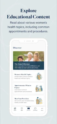 The Diana Health app enables patients to take control of their care from the convenience of their home. Access details about upcoming appointments, message your care team, view test results, and more!
