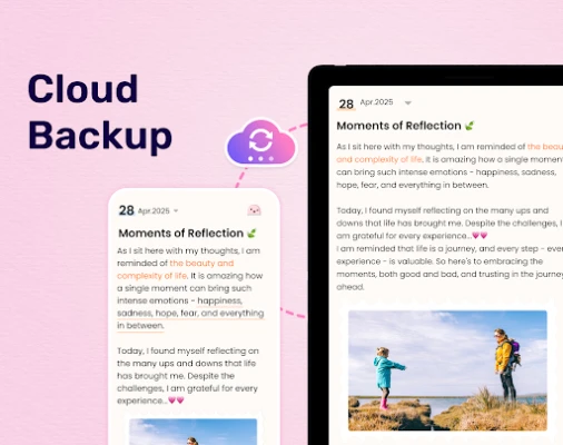 Sync your private diaries or daily journals to the cloud via Google Drive, and never lose any memories.
