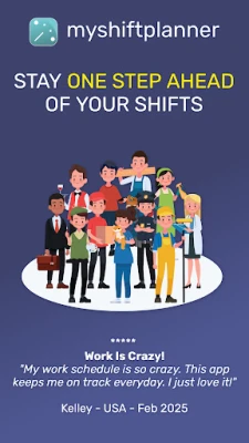 MyShiftPlanner is the most powerful shift calendar app on the stores. With custom features that can handle almost any rotating shift work roster. 400,000+ shift workers around the world are enjoying taking control of their schedule with MyShiftPlanner.
