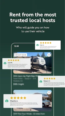 - Search by travel dates, vehicle type, sleeping capacity, cost, and location