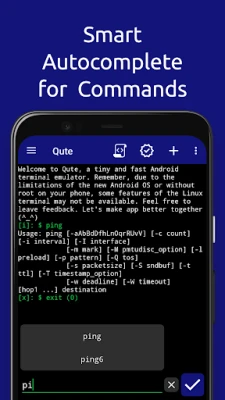 Qute: Terminal Emulator is an application that works quickly and allows you to use the command line on your smartphone.