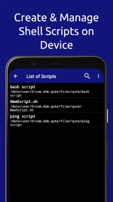 Qute: Terminal emulator - used to emulate a unix terminal and work on the command line on your smartphone. Available for download and installation on smartphones with Android 5.0 and higher. The program is a terminal emulator, it has: automatic prompts, script sets, the ability to save bash scripts.